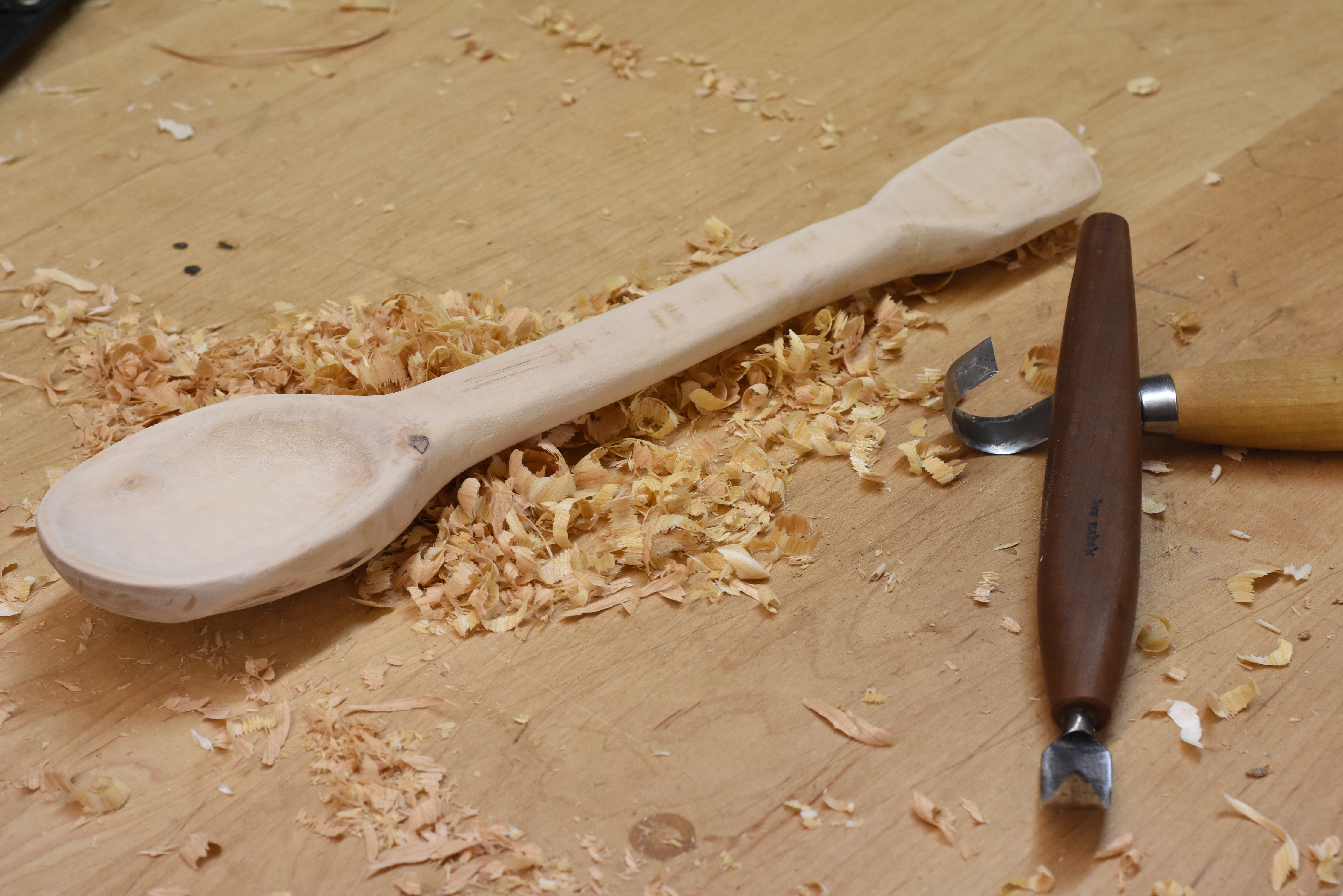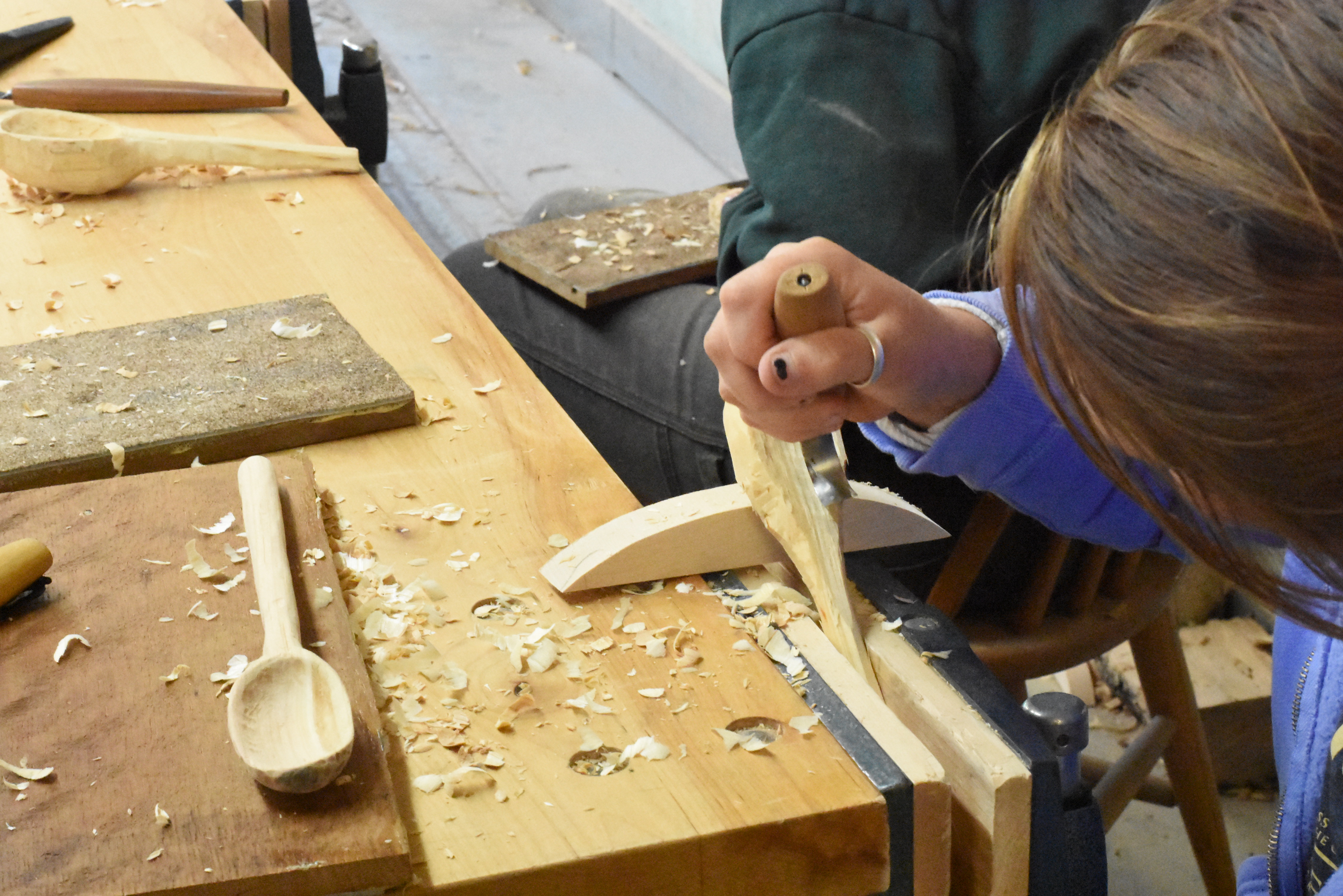 The students I had the distinct privilege of working with last week at Sterling College in Craftsbury, VT were graciously friendly. I feign teaching, as what I do is really share something that is such a joy to me it is difficult to contain myself. I have to really slow down in describing and demonstrating the steps in making a spoon, yet all the while I do not want to bore the students or belabor the points. I don’t think I’m making this up: Spoon making has a disproportionately large number of “ah-ha” moments. On a small-scale, we realize what we are capable of. Wheels start spinning. The disconnection and displacement from all that was for thousands of years narrows quickly. The hands, making things, using tools, together, talking. I’m a sap, and it is beautiful. So as I always say, thank you for sharing your time with me, and tending my fire. Your enthusiasm is a joy to witness.