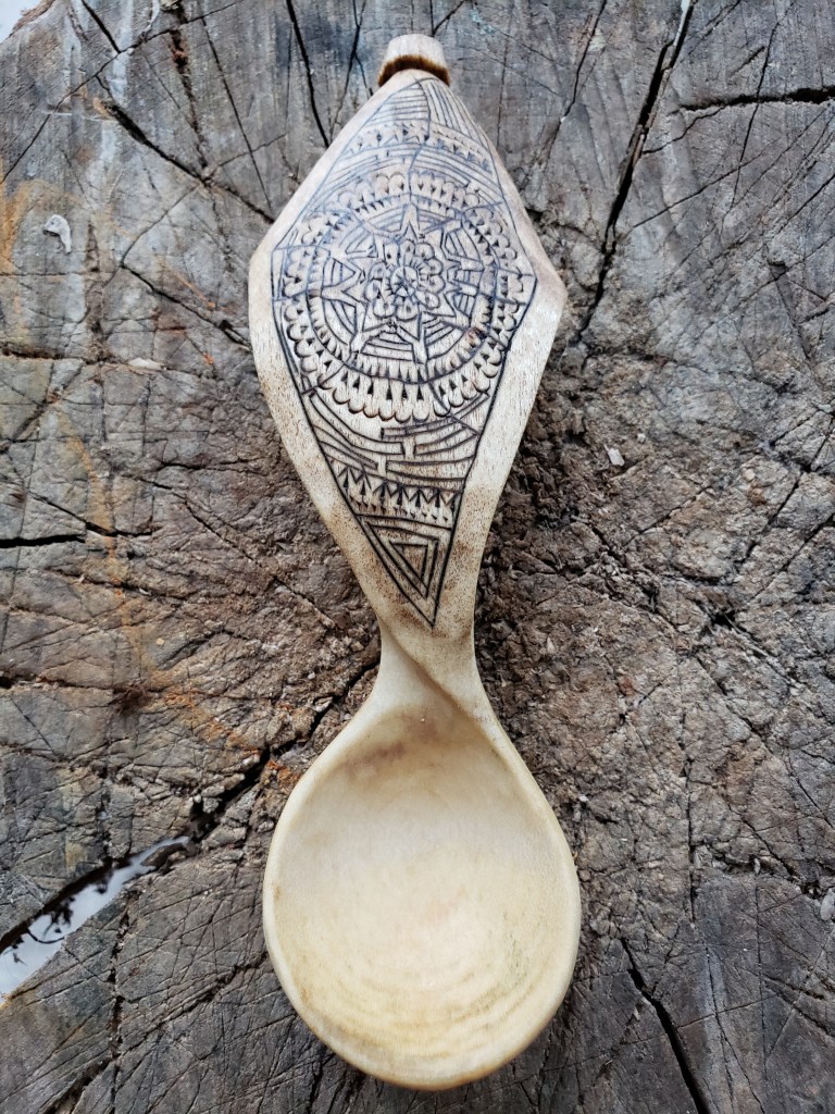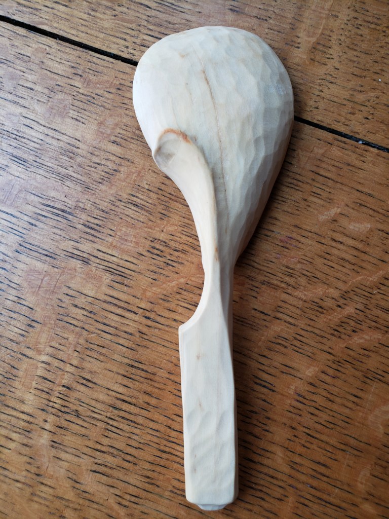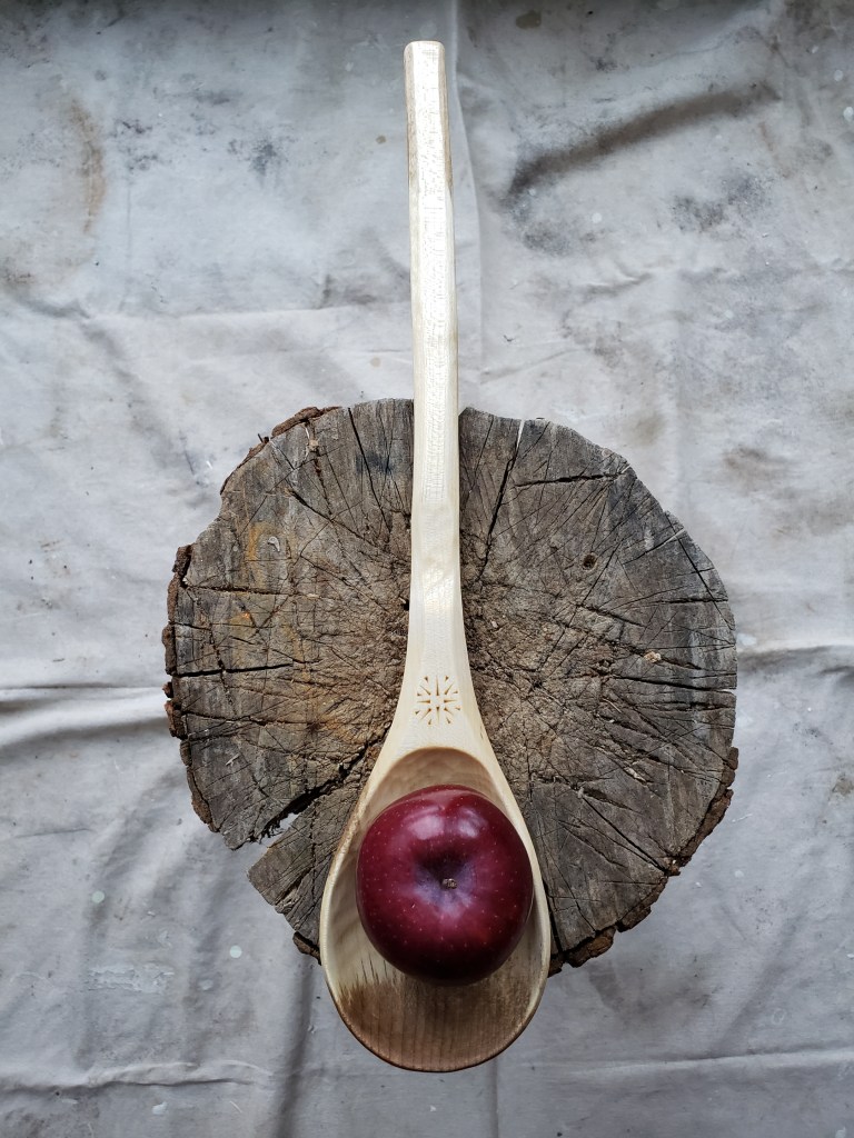It is such a gift to find something to do that you love, and for nearly 30 years now I’ve been making wooden spoons and other utensils from green wood. For me, usually, there are only three simple tools involved. A hatchet, a knife, and a bent knife. These tools are small, easy to carry and to care for, and require no electricity. One set of them could last you close to a lifetime. As with any craft, there are literally hundreds of choices of tools, and dozens of ways to shape wood into a spoon. I’ve tried many tools and many ways. Making a spoon is a really nice project because you create something from start to finish in fairly short order, and get a wonderful sense of satisfaction. Then, you have a spoon. Everyone needs a spoon. You give them away or sell them, and they are gone, and because they are useful material objects made of wood, they are somewhat ephemeral. Every spoon you make teaches you something new. Every piece of wood is different, so there is always a sense of exploration and unknown. You learn how to take care of your tools. There is a rhythm.